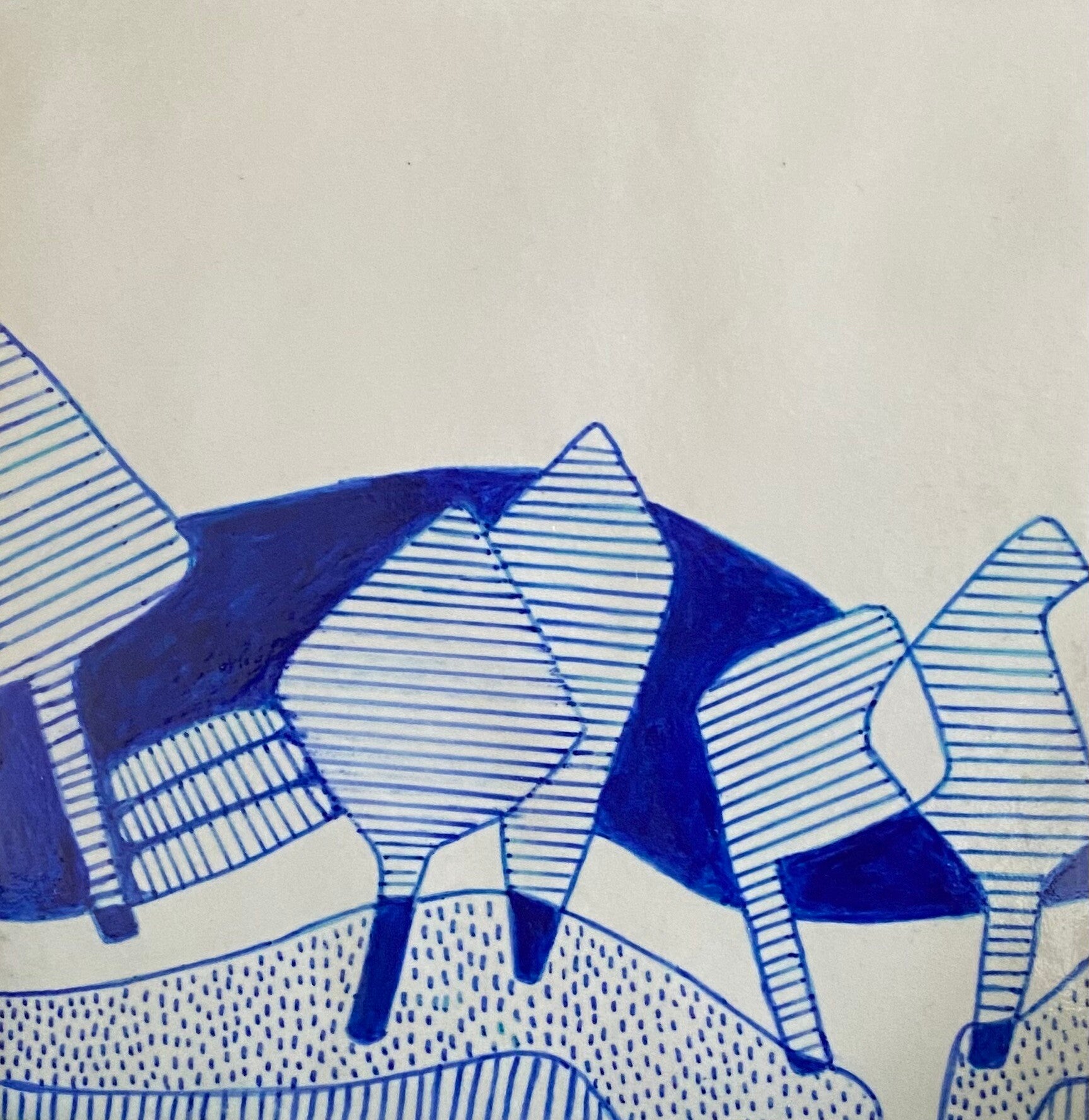 Op mijn tegeltjes heb ik dit landschap op een zo eenvoudige manier. proberen te vangen.